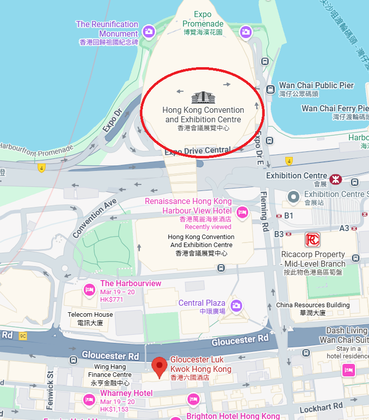 This Hotel locates next to the convention centre (2 mins walk) (reference price: HKD$2000)