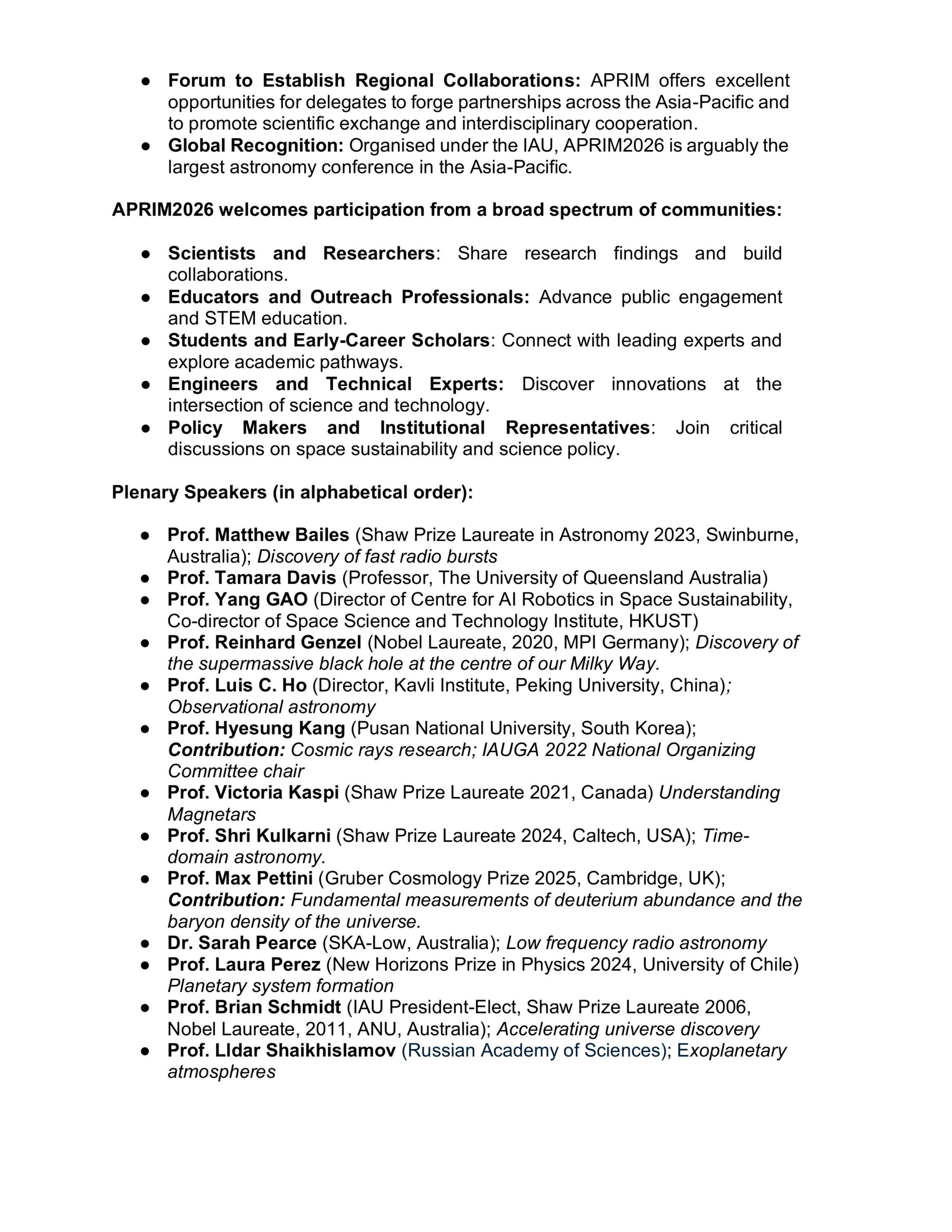Confirmed Plenary Speakers